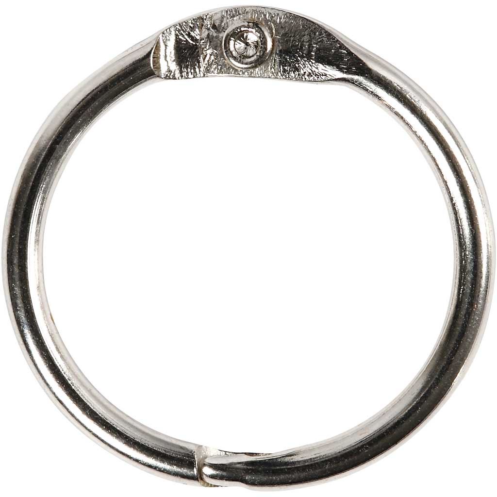 Metalring med enkel åbne- og lukkefunktion. Ringen anvendes til forskellige hobbyformål fx til samling af flere ark karton, pap eller andet til hjemmelavede bøger, mapper, fotosamlinger m.m. (Læs mere)