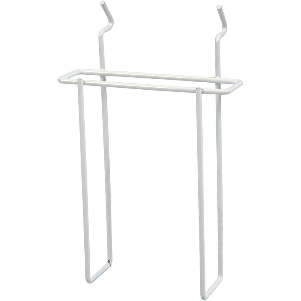 Hvidmalet metalstativ med hylde til fx brochurer. (Læs mere)