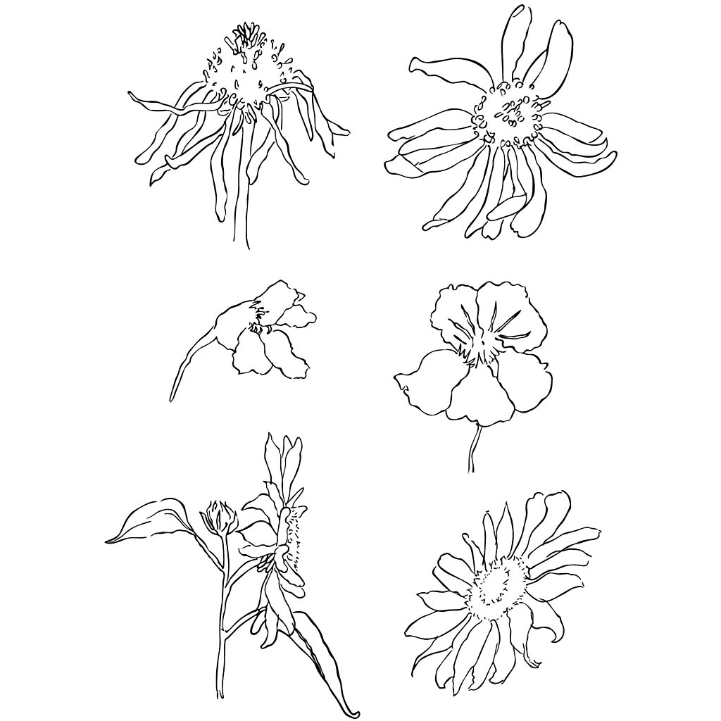 Ark med forskellige clear stamp motiver af transparent silikone med klæbeeffekt. Monteres på akrylblok (vare nr. 21586, 21587 eller 21588) og anvendes som stempel. (Læs mere)