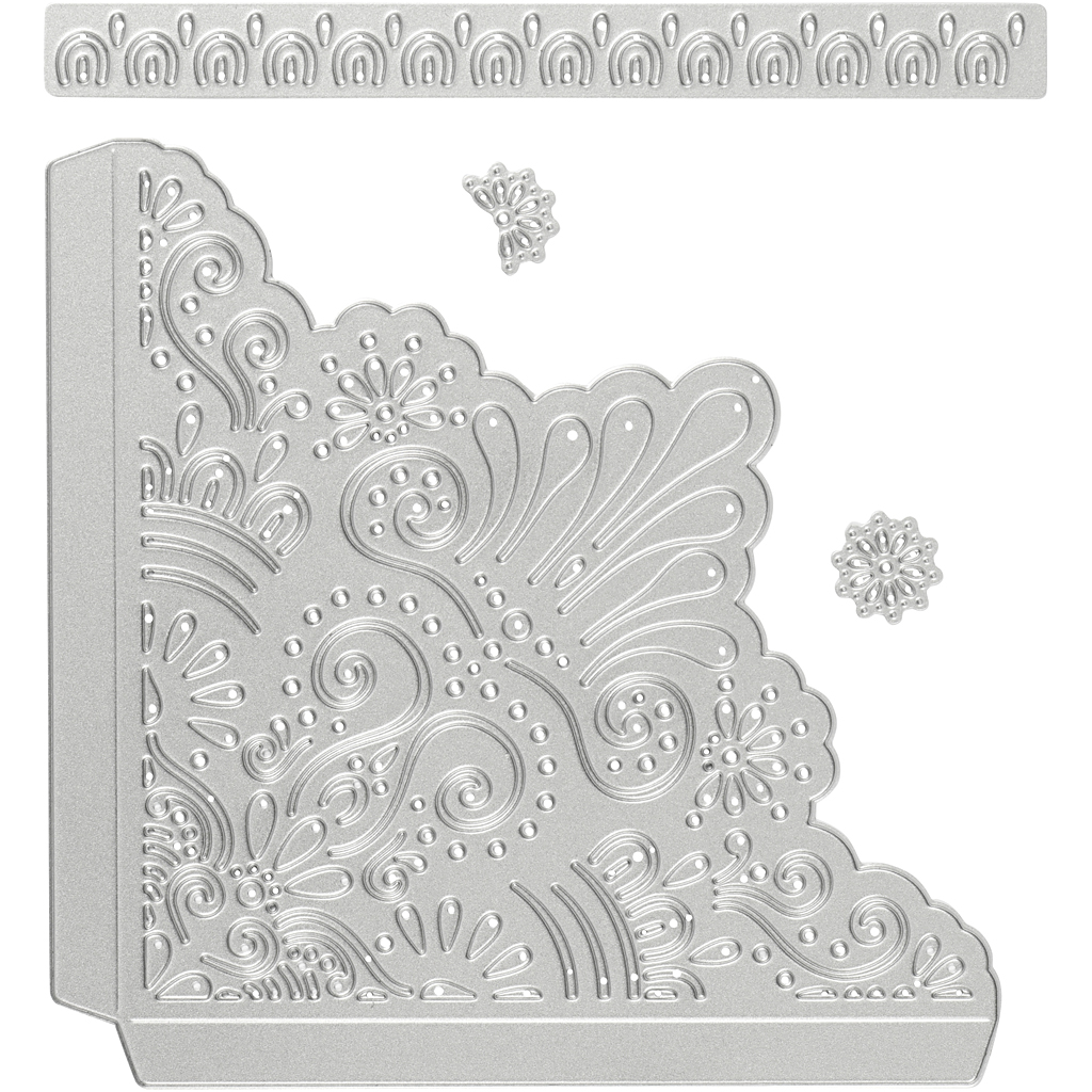 Skære- og prægeskabelon, dekorative hjørner, str. 14,5×1,5 cm, 1 stk.